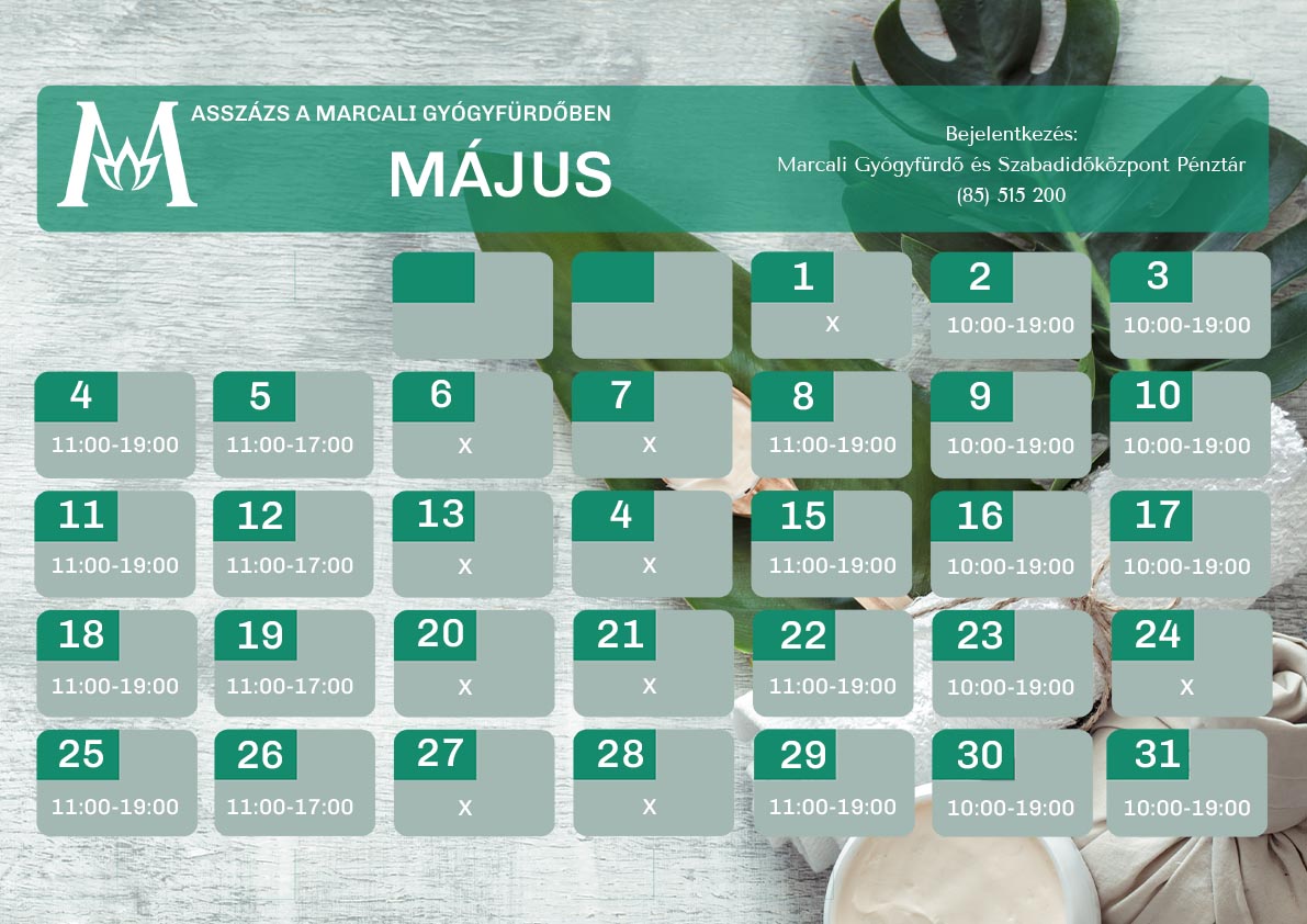 Március-április hónapban az alábbi napokon érhető el masszázs a gyógyfürdőnkben: